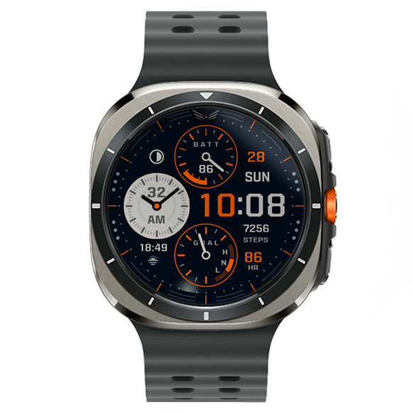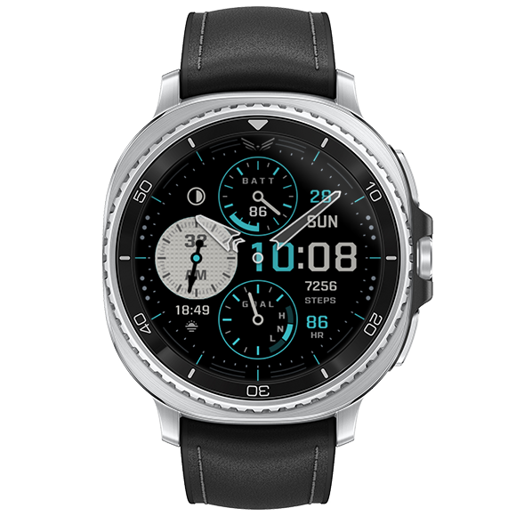 BALLOZI SLATE is bluish modern chronograph styled hybrid digital watch face for Wear OS. Works great on round smartwatches but not suitable for rectangular and square watches.
